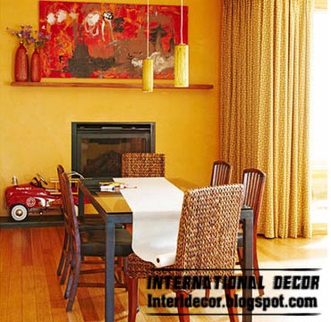 Need this degree of orange to some daring when selected. Only analysis bolder and choose color seats your trip in the dining room. Choose dark brown wood seats until he cools down a little orange, white and choose all the walls of the room. Here's a new idea for choosing colors curtains, make it consists of two layers of cloth, first in orange and the second layer of Chiffon any type degree of brown will you get a very neat appearance in the form of curtains If try this way. To add a touch of nature, choose the color of natural wood room Window frames As for the lighting units choose also brown or any degree of degrees - as you want .